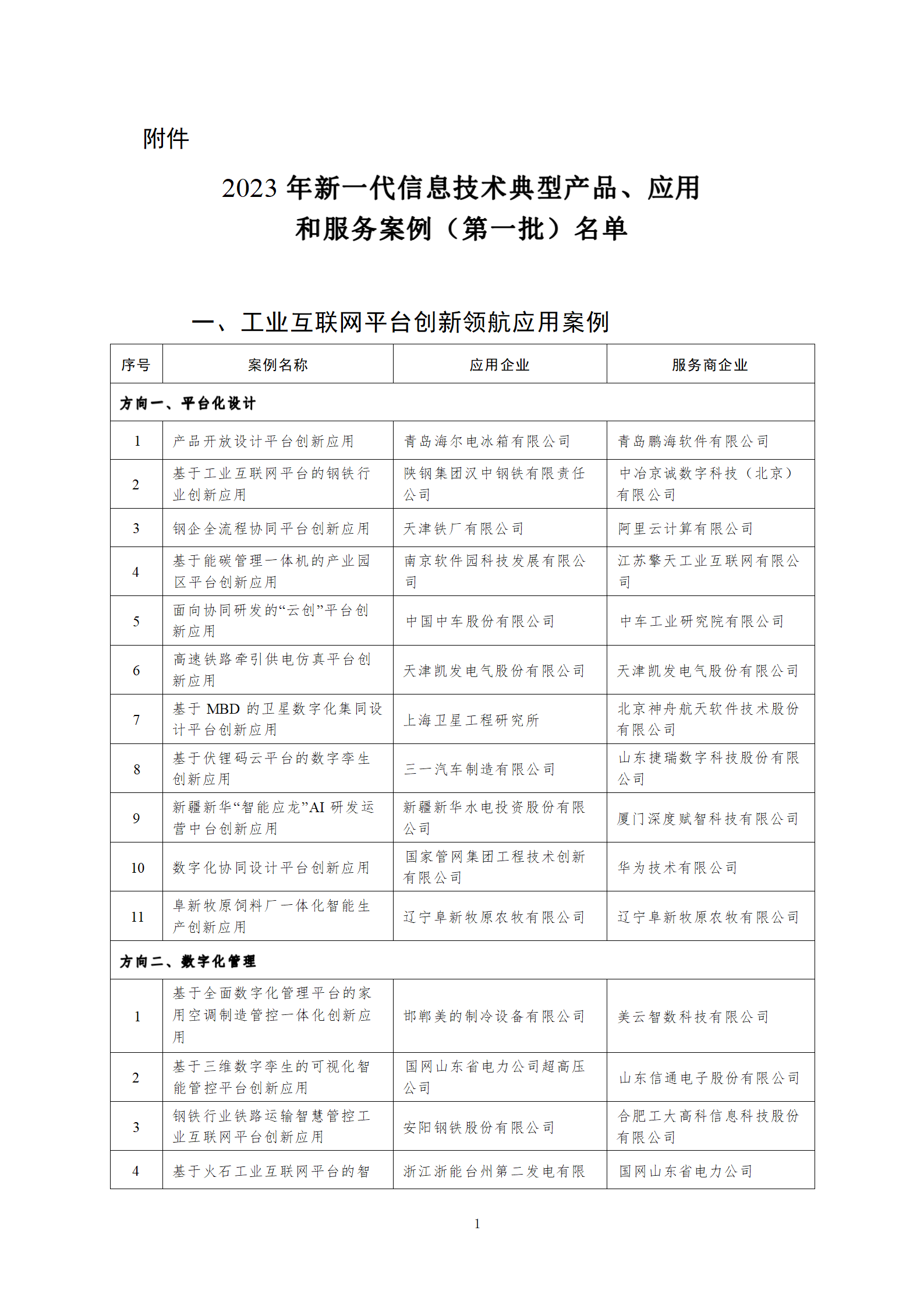 附件:2023年新一代信息技术典型产品、应用和服务案例(第一批)名单